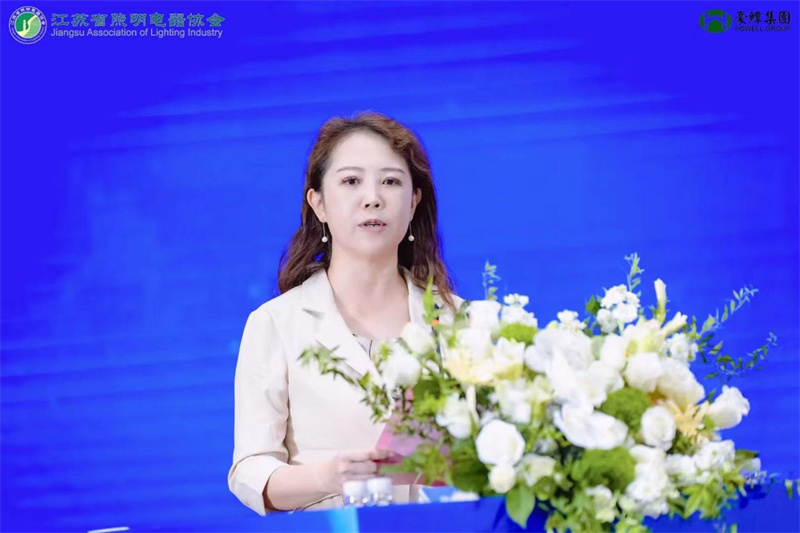 中国照明电器协会秘书长王卓受何烨理事长的嘱托,代表中国照明电器协会向会议的召开表示热烈的祝贺。她认为江苏省是我国照明产业具有长期发展历史和传统优势的省份,一直以来具有较强的学术优势和制造基础。面向新的发展阶段,希望江苏省照明企业以科技创新为首要驱动力,以共同建设照明强国为任务,充分结合江苏省先进产业集群建设的地域优势和资源优势,补短板,煅长板,不断夯实江苏省照明产业的基础,继续在我国照明产业发展版图中保持优势位置。随后,王卓秘书长就“践行国家战略,推动照明行业高质量发展”主题,进行了报告分享。从行业发展现状、当前的形势及和任务、政策机遇和挑战、行业的行动举措四个方面做了行业分析。