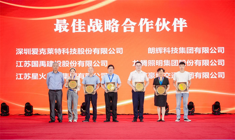 论坛最后,协会举行了授牌仪式。江苏豪纬交通集团等历届年会协办单位获授“最佳战略合作伙伴”,41家支持单位获授“2023年度最佳金牌合作伙伴”、“2023年度最佳合作伙伴”。感谢各位合作伙伴对江苏省照明电器协会的支持!