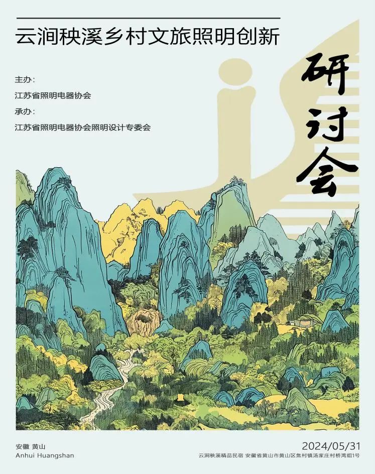 为推动照明产业设计创新整合发展,助力乡村文旅灯光建设,5月31日由江苏省照明电器协会主办、照明设计专委会承办的乡村文旅照明创新研讨会在黄山云涧秧溪召开。协会理事长虞炎秋、执行副理事长兼秘书长沈茹、副秘书长兼照明设计专委会主任石海啸、副主任黄磊、副主任杨建等一行人赴安徽省黄山焦村镇汤家庄村交流座谈。北京照明学会秘书长王政涛,浙江省照明电器协会秘书长陈刚,安徽省照明电器协会秘书长王永,中铁合肥建筑市政工程设计研究院照明分院院长、安徽省照明学会监事长、中国照明学会室外专业委员会委员何斌,安徽省照明学会副秘书长张祁,焦村镇汤家庄村党支部书记焦贵宝等应邀参加座谈会,就如何助力乡村文旅灯光建设进行了深入的探讨。